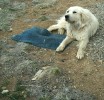 My dog Aspen is guarding the high banker's gold recovery carpet.