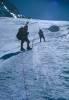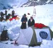 For the climb, each man carried a 75-pound pack and pulled a 45-pound sled from the airstrip at 7,200 feet up to a camp at 10,200 feet. Leaving a three-day load of supplies buried at the airstrip in case of inclement weather when they came down, the three ferried supplies up and then came back down for more. They did this for each camp and, in this way, actually climbed most of the mountain twice! They passed "commercial trips" headed back down with their cheap, overloaded sleds (called "pigs") which the people had dragged too high on the mountain.