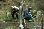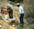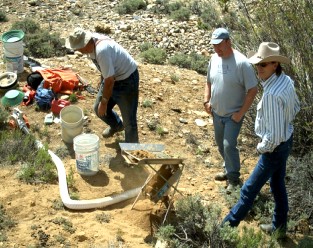 What a great three days of prospecting! I had to leave the next day, Monday, May 22, while John and Leonard stayed on a couple of more days. John is a meteorologist and a claim owner from Oklahoma, which is okay! Leonard is leaving Colorado in a couple of weeks to prospect for gold and to look for and file on some more claims in Alaska (hope/pray), for two weeks. We will meet up again, July 1-7, 2006, on our claims on Douglas Creek in the Medicine Bow National Forest in Wyoming. Douglas Creek is best for those who like to dredge. A dredging permit is needed for Douglas Creek. The permits are free. Most of the gold on Douglas Creek is lying on bedrock about two to four feet below the surface of the riverbed. The river is only a few inches to a foot or so deep, so long-arming works, and most of the creek is safe for most children and pets. I have seen some gold taken with a pan or a sluice, no permit needed. Most of the gold that I've seen taken with a pan or a sluice came from the tailings of a dredge that was run too fast, and most are.