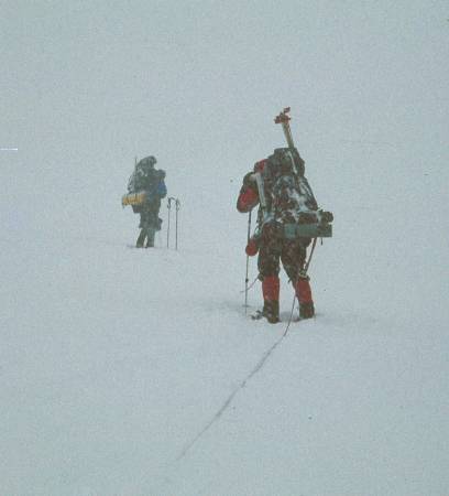 Jeff told us that he and Roger were both 42 years old and Michael was 37 at the time of their Denali climb. Michael directed the Colorado Outward Bound's Professional Training Division and Roger was, and still is, one of the principle partners in Addison, a marketing and communications company in New York City. All three men were in the top shape of their lives, knowing that when they attempted the self-supporting (no guides, no porters) Denali climb, that "tough beats strong" and that many climbing groups turn back at a mere 14,000 feet!