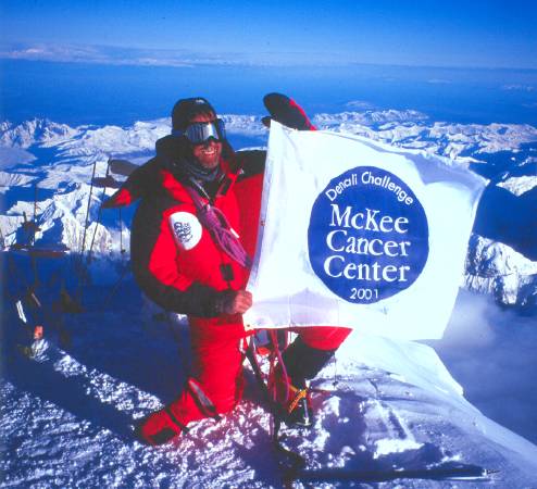 Yes, Jeff is a survivor--in more ways than one. He has survived not only the adversity of high mountain peaks, but an advanced stage of cancer as well. Jeff is in good company, too. He had the same cancer and doctors as Lance Armstrong who just won bicycling's Tour de France for the fifth consecutive year. Because of this experience with cancer, Jeff started the "Denali Challenge" fund on behalf of Loveland's McKee Cancer Center, a part of the McKee Medical Center of which Jeff is the Associate Administrator.